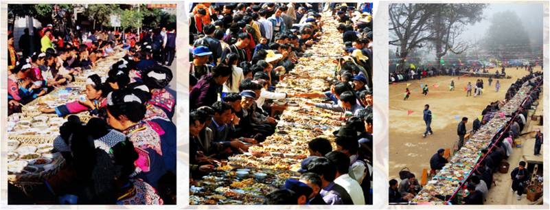 说到节庆,梯田农耕有三大节日。开春的时候要过战神节,摆长街宴。一到节日,大家都会到林子里去祈求战神赐予我们五谷丰登、六畜兴旺、农耕顺利。长街宴,被称为世界上最奢侈的宴席。菜来自各家各户,不论你是贫穷或者富裕,大家都会交一些钱,然后寨子里统一杀一头猪,每一家都会不多不少的分一块肉,拿来分享。实际上整个节日的过程就是拿来求福、赐福、享福的过程,是精神上和谐沟通的表达。但是我们搞旅游设计,不要因为游客喜欢就天天搞长街宴,它是有信仰在里面的,是有农耕的分时在里面的。如果天天长街宴的话,他就不是世界文化遗产了,它就是一种表演。