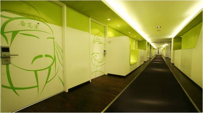 皇家驿站之所以被很多国外顾客记住主要包括两个比较独特的设计。第一是每个房间都没有号码,只是利用不同皇帝的名字来区分,但国外顾客因为看不懂中文,只能凭借皇帝的头像来寻找自己的房间,对于这种找房间的小游戏,可以激发国外游客的好奇心和新鲜感,加深他们对酒店的印象。第二是露台上的露天浴缸,虽然实际上的功用效果并不明显,但同样可以给顾客留下了独特的记忆点。