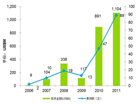 2006年-2011年中国农业领域投资情况