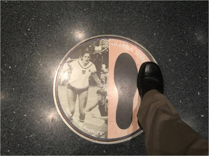 春田篮球名人殿堂内展出的前苏联某篮球女选手的足印(董二为摄于2015年4月)