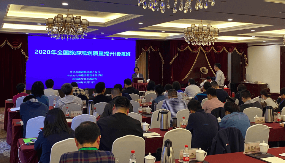 由文化和旅游部资源开发司主办,中央文化和旅游管理干部学院以及南京市文化和旅游局承办的全国旅游规划质量提升培训班在江苏南京举办。文化和旅游部十四五规划专家委员会专家委员、北京大学城环学院旅游研究与规划中心主任吴必虎教授应邀作为培训专家,以《十四五旅游规划研制与与区域旅游目的地建设》为题,给学员们讲授了两个半小时的精彩内容。