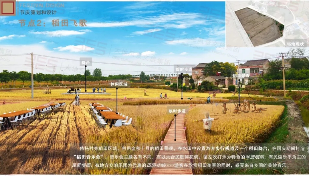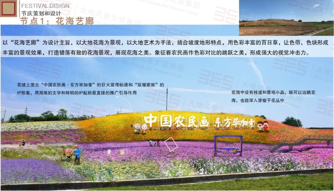 提出举办一场“大地拾彩——冶山大地艺术畅想季”,包括花海艺廊、稻田飞歌、梨享生活、幸福茶园、大地野趣五大节点,以及一场种画人计划。