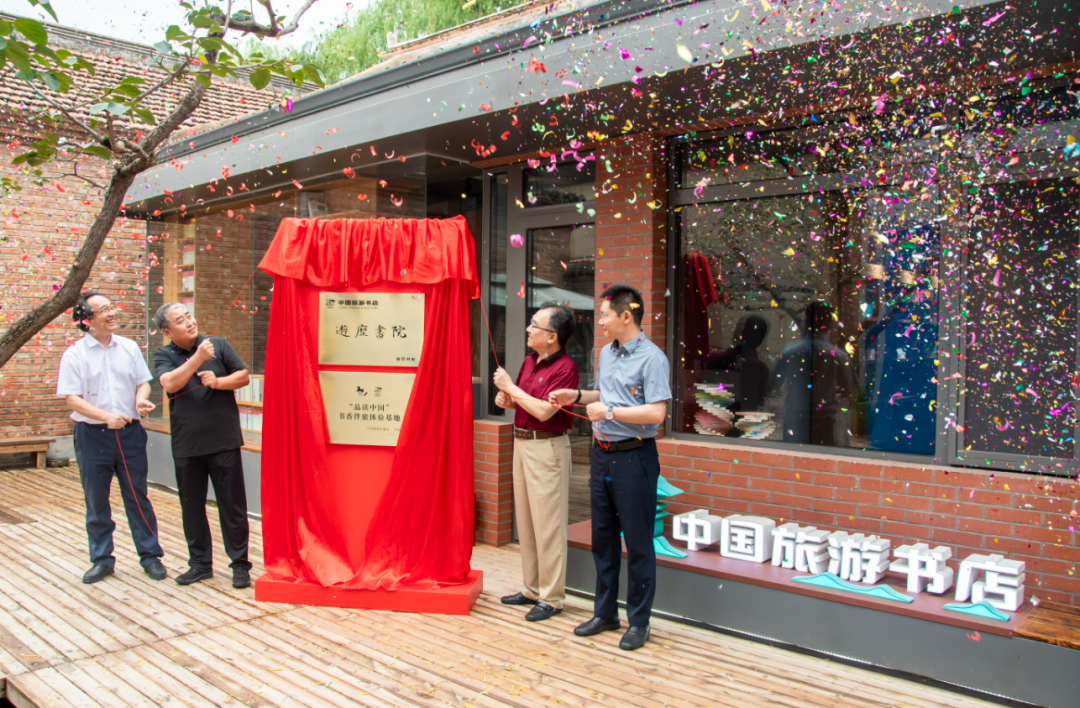 白雪华、张润生、吴必虎、胥波共同为中国旅游书店·游历书院揭牌。中国旅游书店·游历书院是中国旅游出版社以“品牌授权+整合营销”方式在全国落地的第二家书店,是中国旅游书店和游历图书馆互补协作、创新联动的结晶。中国旅游书店是由中国旅游出版社与文化和旅游行业单位深度合作共建,创造的新的文旅消费场景,实现了实体书店在转型中发展,为“诗和远方”的结合开辟了新路径。而游历图书馆以吴必虎教授的游历理论为指导,以游历文化为主题,打造了一个复合文化体验空间。两者的有机结合将进一步提升文旅公共空间的沉浸式体验,消费者既可以接触到纸媒书写的深度文化的“种子”,也可以体验到数字文旅的文化创造现场和蕴含在地文化特色的文创产品等业态模式,能够更好地持续输出与赋能文化旅游目的地。