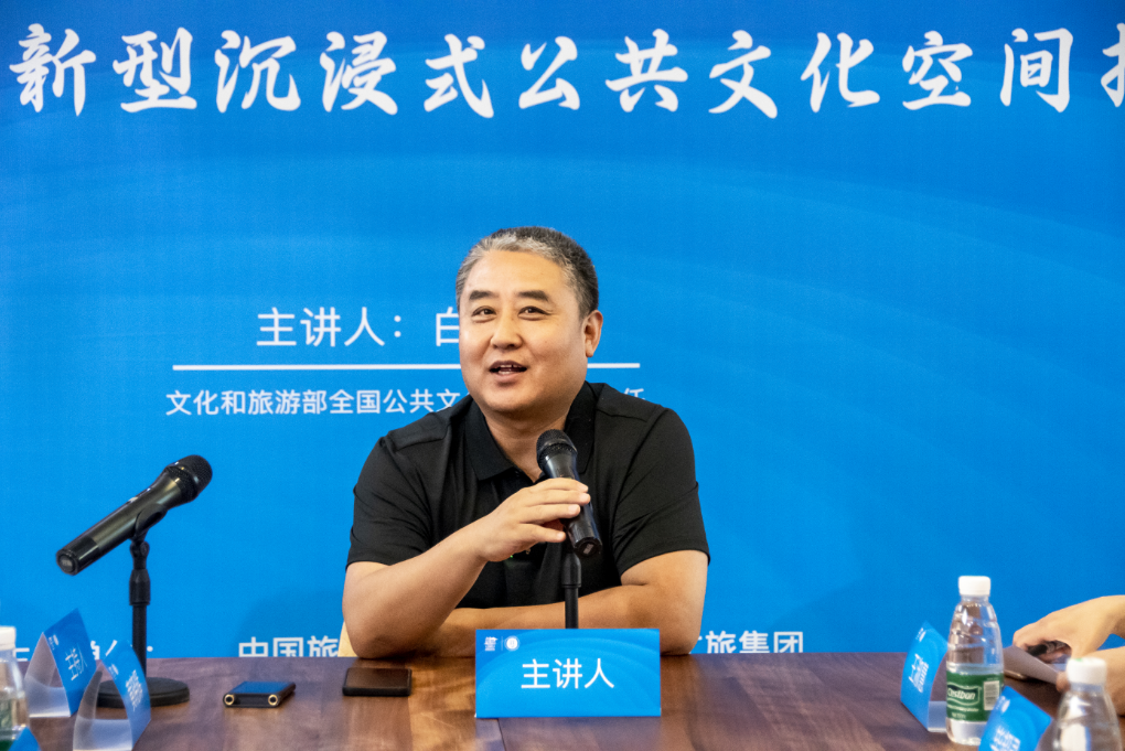 白雪华为“书香中国”大讲堂第二讲暨大地风景文旅研究生班第四期授课演讲,围绕“文旅融合·新型沉浸式公共文化空间打造”主题,面向线上线下听众,分享了推进新型公共文化空间高质量发展的方法和路径。他从乡村公共文化空间打造、青少年校外美育基地建设、沉浸式公共文化空间全民艺术普及三个方面,结合基层公共文化发展现状,解读了公共文化建设的新动向、新思路:首先,打造好乡村新型文化空间和民族民俗文化旅游示范区,通过加强标准化和特色化建设,改造农村已有闲置空间,以文旅融合促乡村振兴;其次,在双减政策背景下建设以艺术之美、文物之美、非遗之美、建筑之美、乡村之美、生活之美为代表的“六美”青少年美育校外实践基地,使青少年儿童更好地接受艺术熏陶,推动公共文化服务高质量发展;最后,在基层公共文化空间的创新上,通过构建沉浸城市故事会、24小时乡村文化驿站,结合地方文化引入创意创作和新兴沉浸式项目。在交流互动环节,白雪华还提出注重多方协同和资源整合的重要性,并分享了大量公共文化空间打造的经典案例。