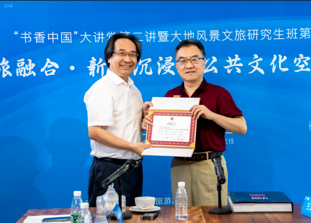 6月28日,由中国旅游出版社和大地风景文旅集团联合主办的“书香中国”大讲堂第二讲暨大地风景文旅研究生班第四期在北京市昌平区游历图书馆举办,中国旅游书店·游历书院揭牌仪式同期举行。